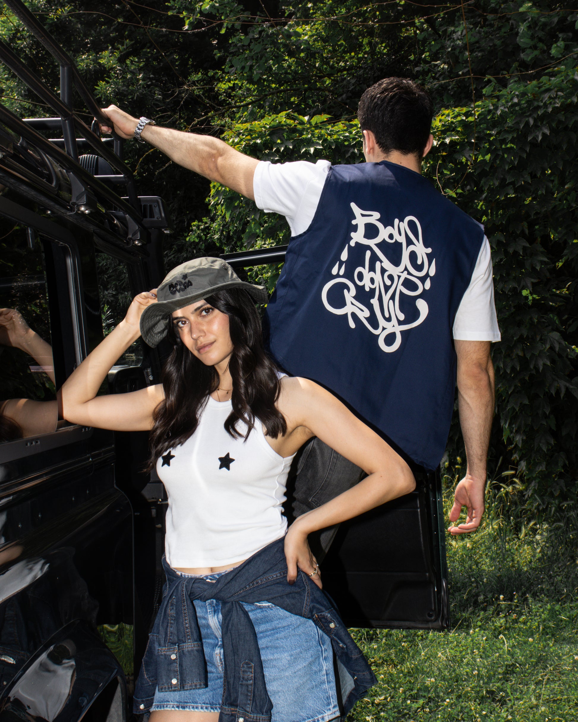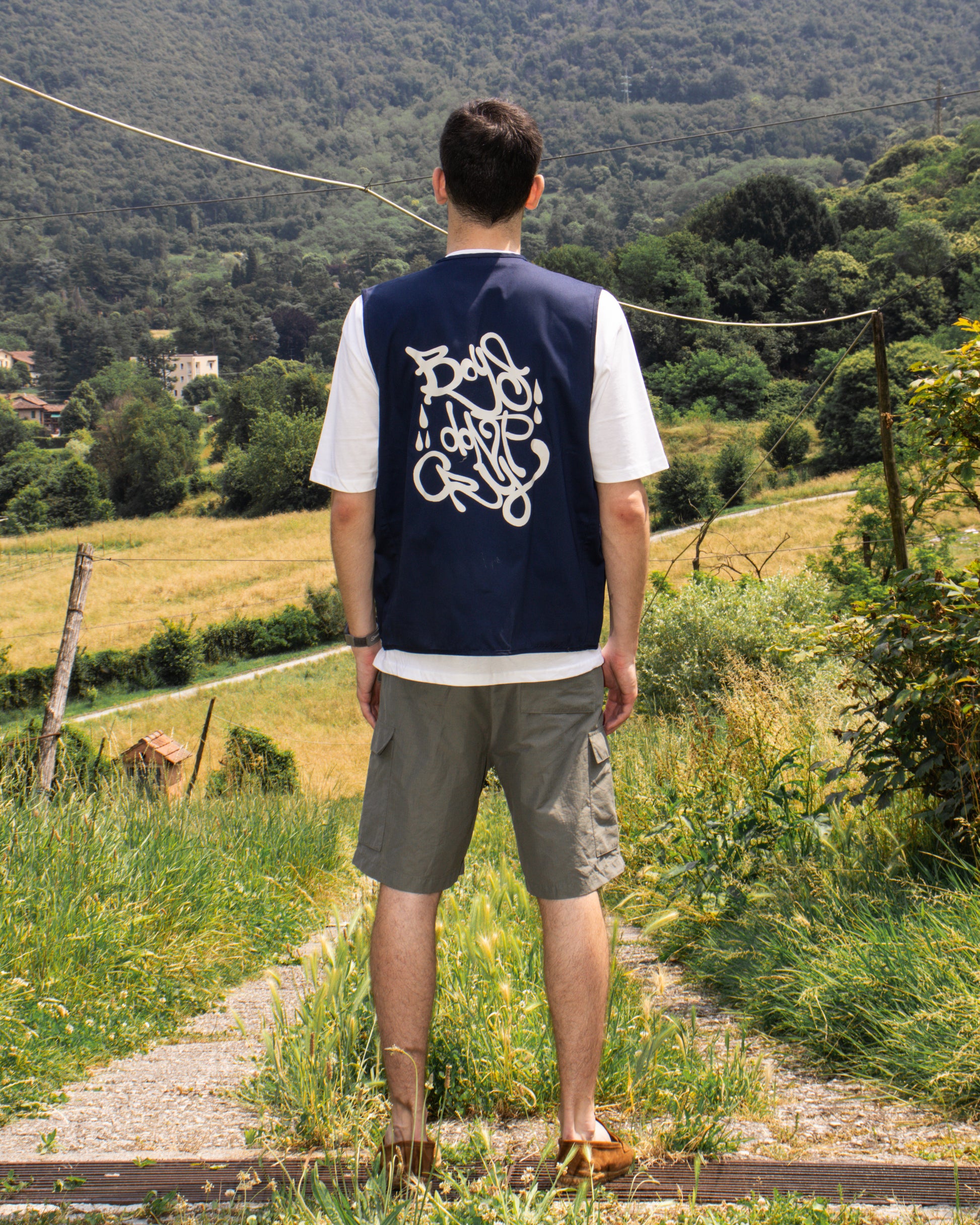 Gilet blu dallo stile essenziale con una forte personalità. Sul retro la scritta "Boy's Don't Cry" in beige, per un tocco grafico che non passa inosservato. Un capo versatile, perfetto da sovrapporre a t-shirt, felpe o camicie per un look urban e deciso.